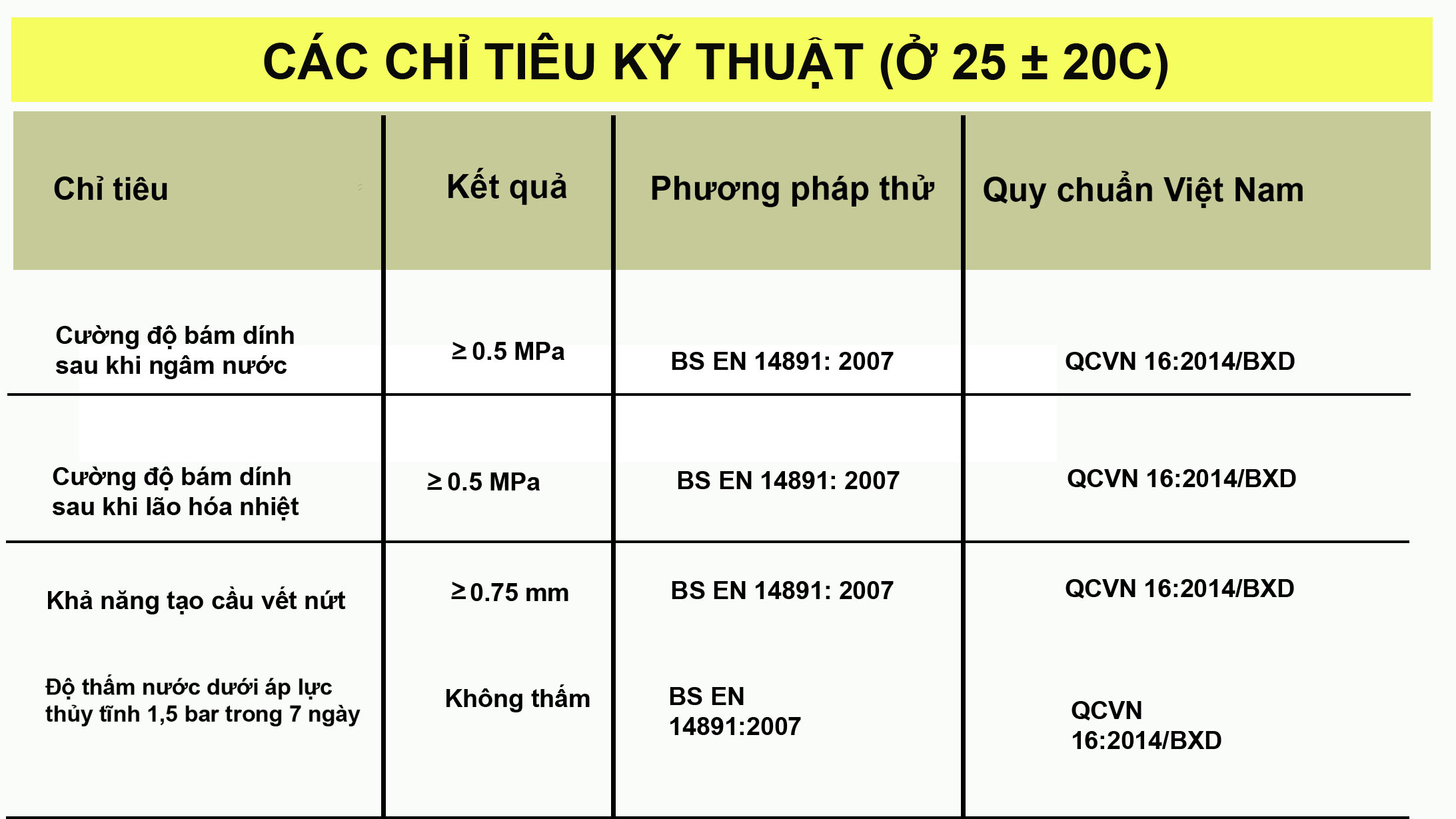 Sản phẩm thích hợp sử dụng trong việc xử lý chống thấm, chống ăn mòn cho tường, sàn và vách tầng hầm, nhà vệ sinh, phòng tắm, bể chứa nước... và các hạng mục thi công khác có yêu cầu khả năng chống thấm.