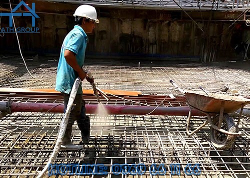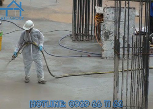 - Tùy vào yêu cầu chịu ướt của cấu kiện thi công, phun một hoặc hai lớp phủ theo chuyển động tròn.