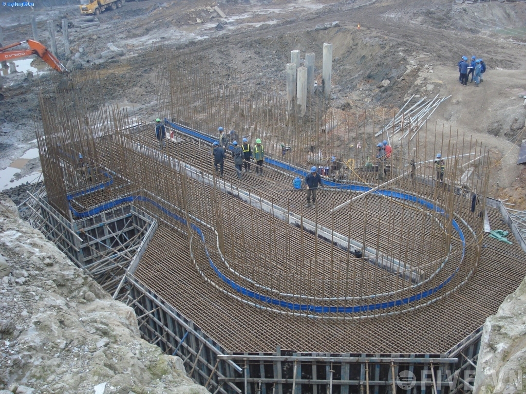 Trước khi đổ bê tông sàn lần thứ nhất băng cản nước PVC O250 đã được đặt tại vị trí mạch ngừng thi công sàn, một nửa chiều rộng của băng cản nước PVC sẽ được nằm trong bê tông đổ lần thứ nhất, khi đổ bê tông lần tiếp theo mạch ngừng thi công sàn phải được xịt rửa sạch. Trước khi đổ bê tông lần tiếp theo phải đặt lại băng cản nước PVC O250 đúng theo thiết kế.