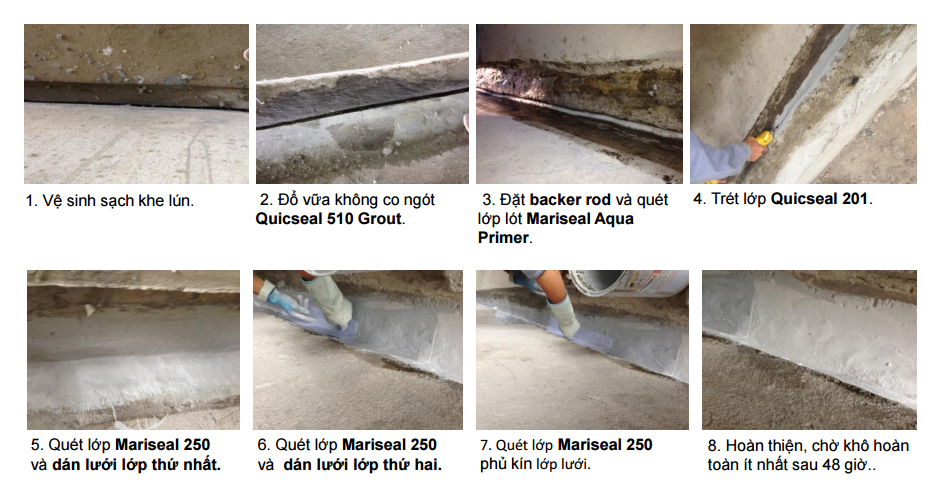 - Dùng chất trám khe Quicseal 201 trám lấp đầy vị trí khe lún.