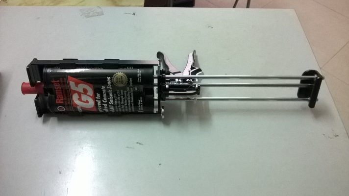 Cho hóa chất keo cấy thép Ramset E102 vào súng bơm keo sau đó bạn bơm trục tiếp vào vị trí cần khắc phục sự cố.