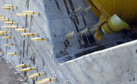 Dùng máy đục bê tông cầm tay đục rãnh hình chữ V với kích thước sau 1cm và rộng 1cm trên toàn bộ vết nứt. Sau đó gắn bát bơm cố định đầu bát bơm bằng keo Sikadur 731 sao cho liền mạch. Gắn bắt bơm xi lanh theo đúng quy trình theo vị trí đã được đánh dấu trên toàn bộ rãnh nứt.