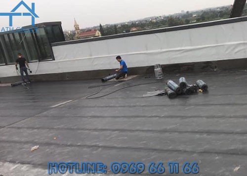 - Đến khi lớp màng nhựa dẻo cháy và lớp bitum bắt đầu tan chảy, như vậy sẽ tạo ra một lớp hàn nhiệt giữa màng và mặt nền
