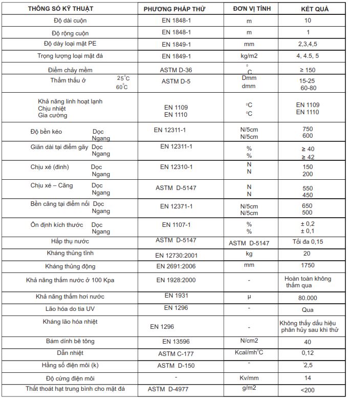 Thông số kỹ thuật màng khò nóng BITUMODE DELTA - P