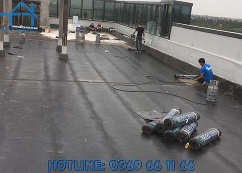 - Đến khi lớp màng nhựa dẻo cháy và lớp bitum bắt đầu tan chảy, như vậy sẽ tạo ra một lớp hàn nhiệt giữa màng và mặt nền