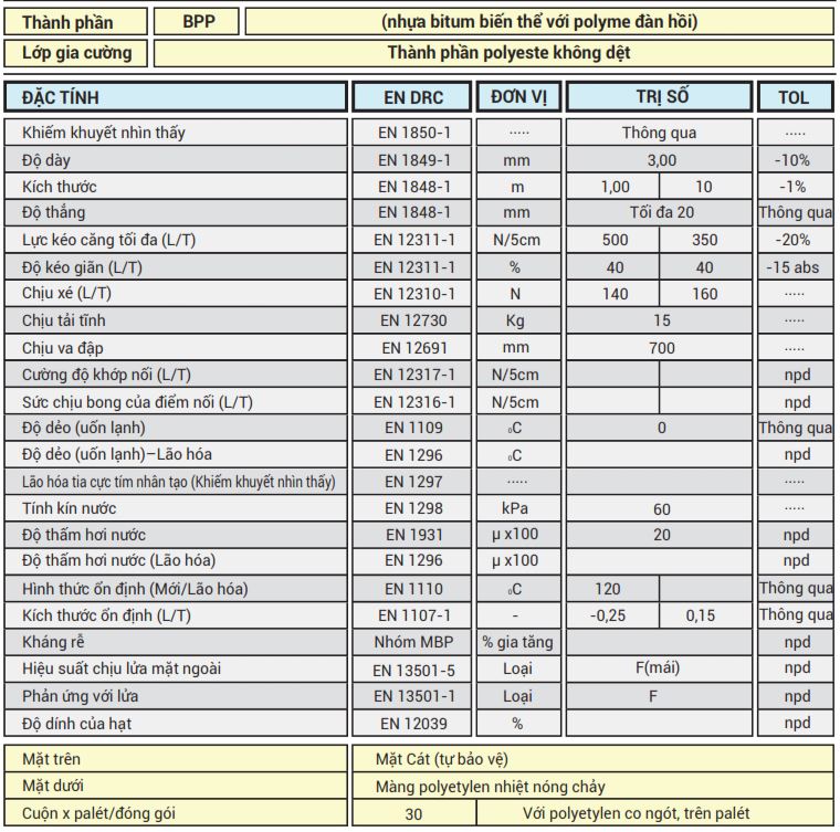 Thông số kỹ thuật của màng khò nóng Breiglas