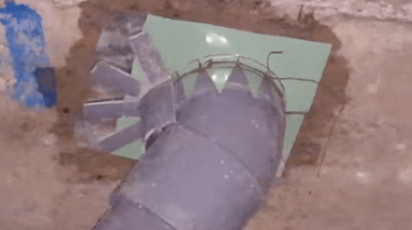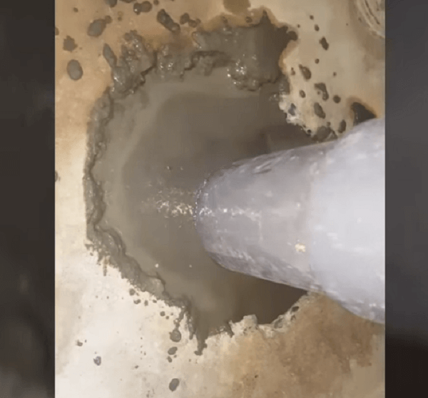 Đục rãnh hoặc phễu quanh bề mặt bê tông quanh cổ ống để chuẩn bị cố định ống. sau khi đục cần dùng chổi sắt quét sạch toàn bộ cát, vữa vụn rơi rụng sau khi đục.
