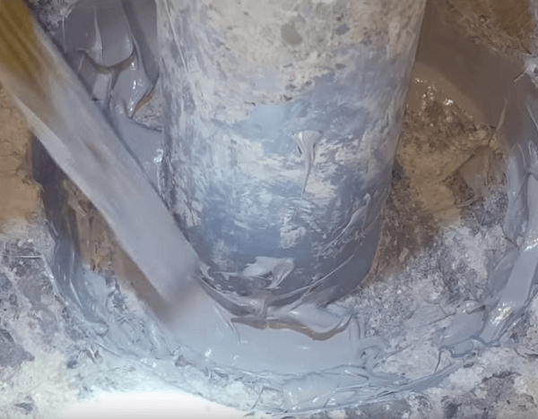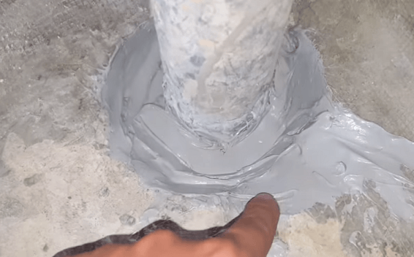 Sau khi đã đổ đầy lên đến bề mặt thì chờ cho lớp vữa này khô, sau đó quét một lớp Sikaflex dạng keo lên trên cùng để đảm bảo khả năng gắn kết của vật liệu quanh cổ ống và nền bê tông.