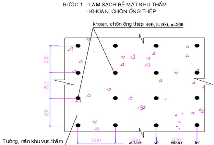 Trong quá trình thiết kế và thi công cũng cần đặc biệt chú ý tới các giải pháp kỹ thuật và các biện pháp thi công nâng cao khả năng chống thấm của các vị trí như mối nối thi công mạch ngừng, lỗ bu lông, đường ống kỹ thuật xuyên qua tường và đáy tầng hầm.