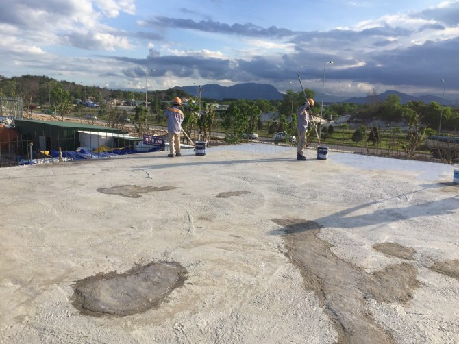 Công nhân công ty ATH Group đang thi công công trình chống thấm ở Nha Trang bởi sản phẩm Mariseal