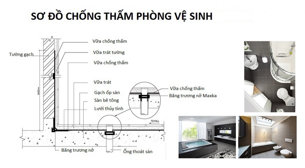 - Xác định các vị trí, phạm vi, phương án cần phải tiến hành chống thấm như: mạch ngừng, cổ ống, mặt tường, mặt sàn vệ sinh…