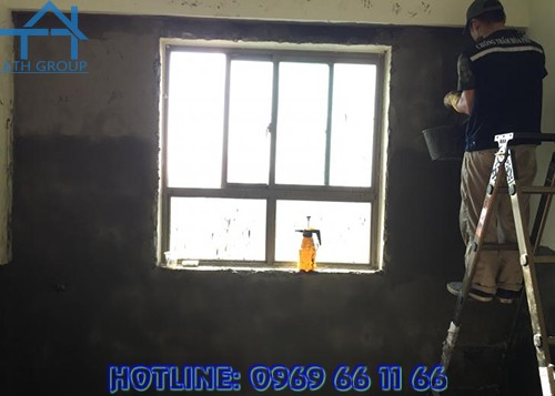 - Trường hợp được yêu cầu thi công 2 lớp chống thấm, lớp đầu tiên làm cho bề mặt gồ ghề xù xì để có thể bám dính tốt với lớp thứ hai, cuối cùng sử dụng bay để đạt được lớp chống thấm mong muốn.