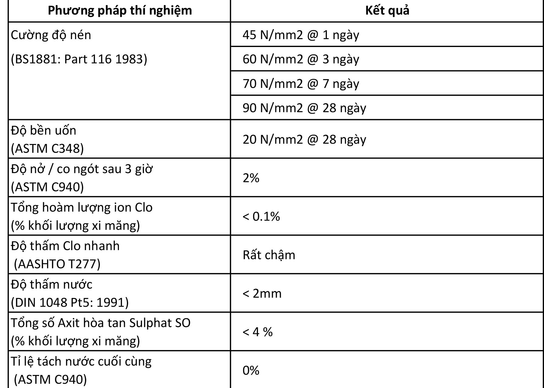 Fosroc Conbextra BB80 có độ chảy tuyệt vời, đạt cường độ cao sớm, cường độ sau cùng đạt 90 N/mm2 sau 28 ngày