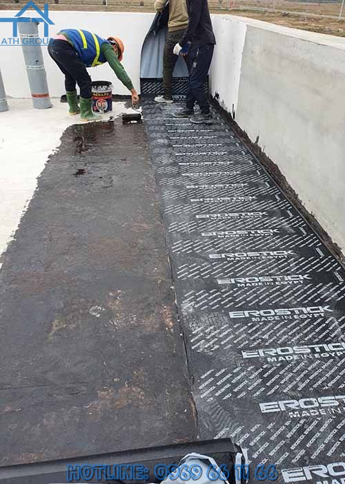Tổ chức thi công màng GPS Erostick 1.5mm từ vị trí thấp nhất và đi về hướng cao dần (nếu bề mặt có độ dốc).