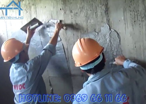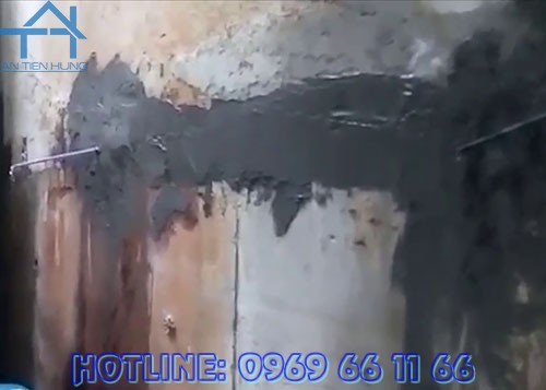 - Vệ sinh sạch sẽ bề mặt, tạo ẩm bằng nước sạch cho tới khi bề mặt bão hòa nước; Những vị trí thấm nước có áp cần xác định tâm của vị trí thấm và đặt ống cục bộ để dẫn nước trước khi tiến hành thi công chống thấm;
