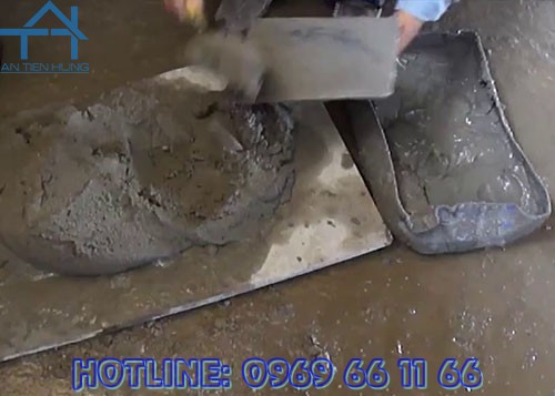 - Chờ cho lớp hồ dầu chống thấm vừa ráo mặt, phủ nhẹ nhàng lớp vữa bảo vệ mác 75# hoặc 100# dày khoảng 10 mm lên trên mà không làm bong dạt lớp hồ dầu chống thấm phía dưới;