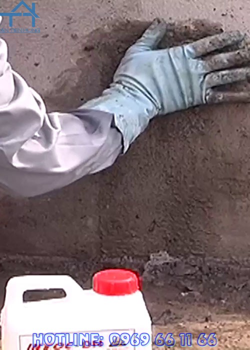 - Dùng tay vo hỗn hợp thành hình nút chai, nhanh chóng đắp sâu vào lỗ rò rỉ, dùng tay hoặc bay ép chặt và giữ nguyên như vậy trong vài phút;