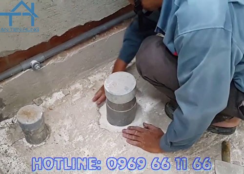 - Đối với các đầu ống cấp, thoát nước trong nhà vệ sinh, hồ bơi... dùng tay chà ép sao cho keo bám đều xung quanh nơi tiếp giáp giữa cổ ống và bê tông;