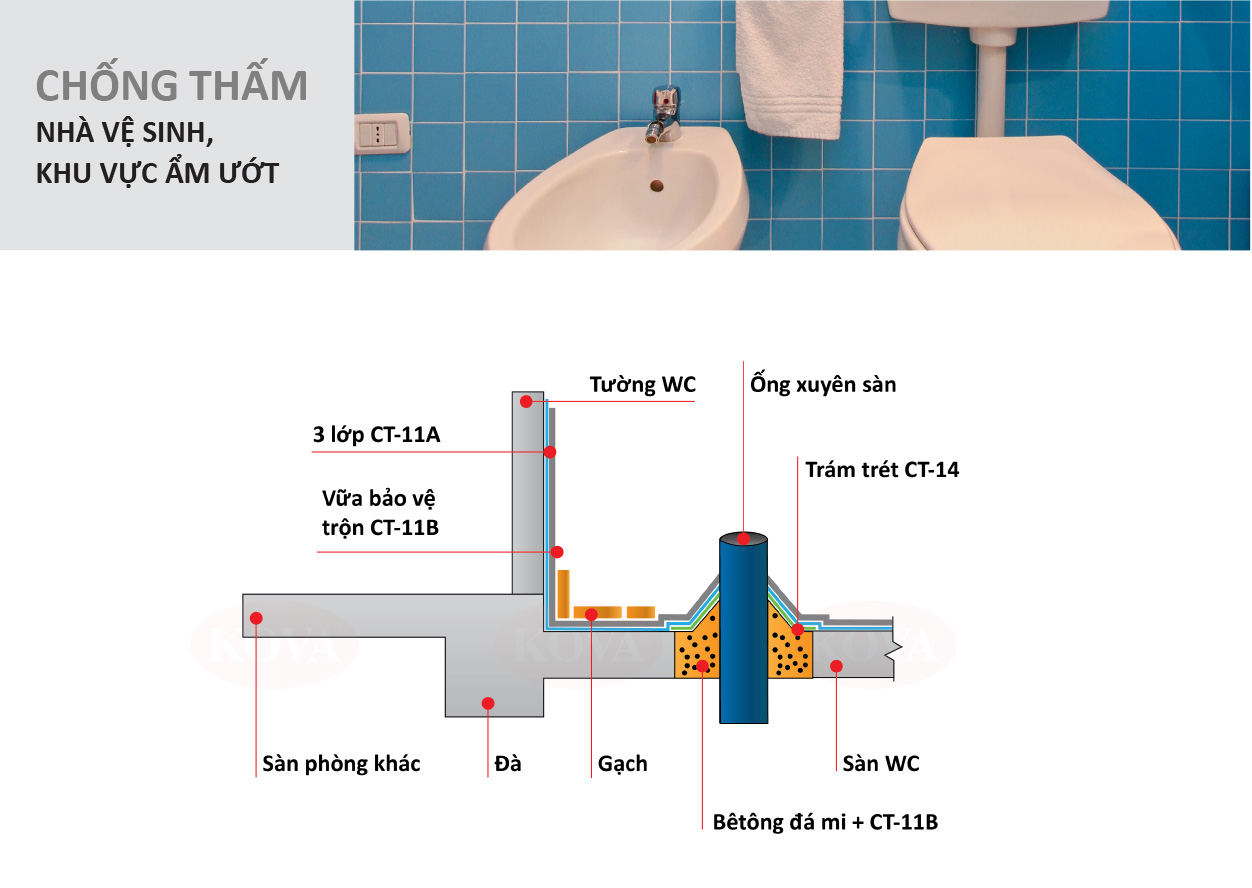 Chống thấm nhà vệ sinh, khu vực ẩm ướt bằng sơn chống thấm Kova CT 11A