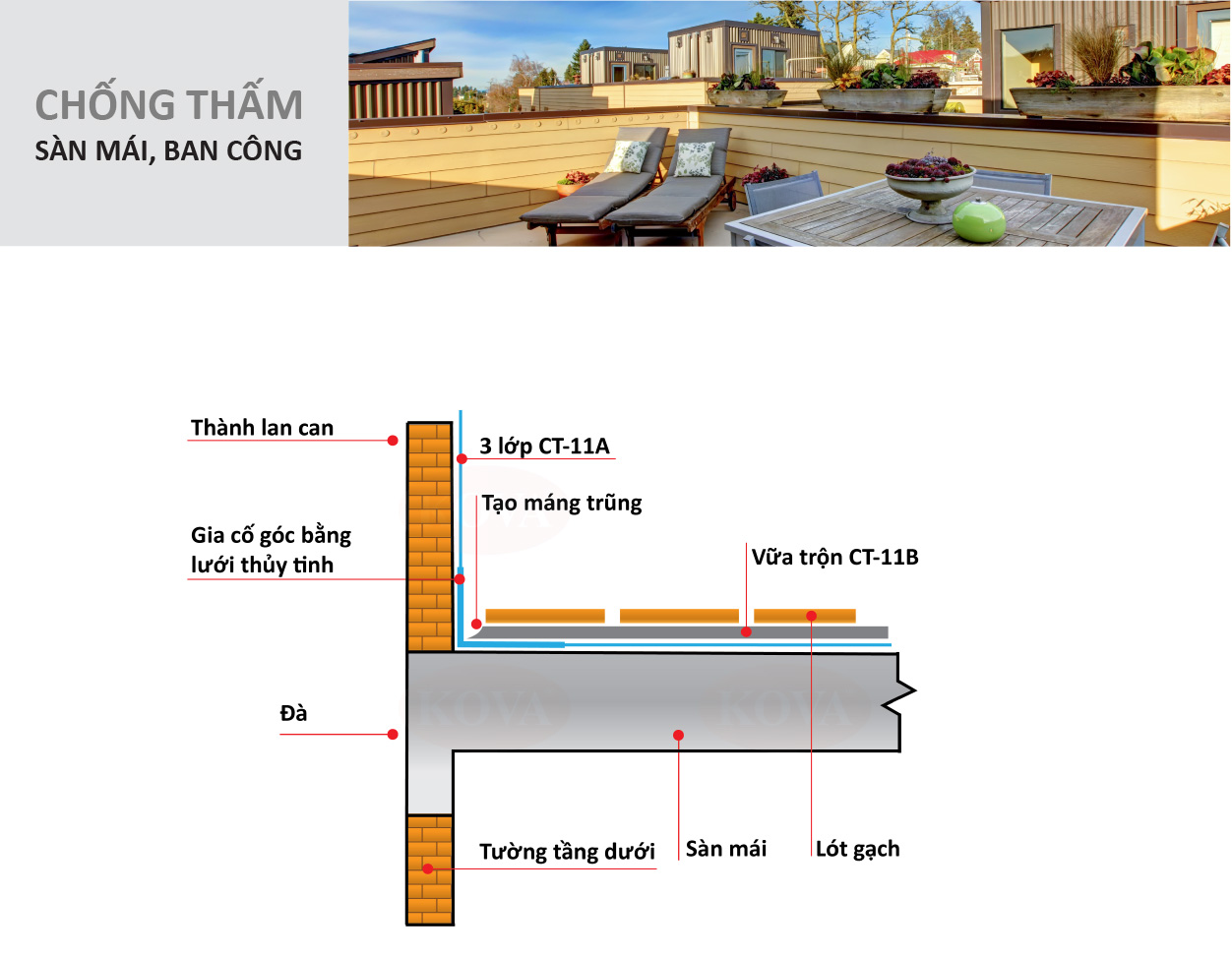 Chống thấm sàn mái bằng sơn chống thấm Kova CT 11 A