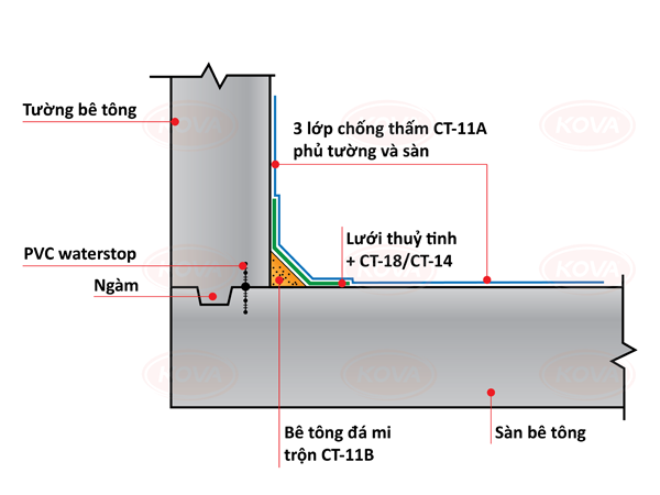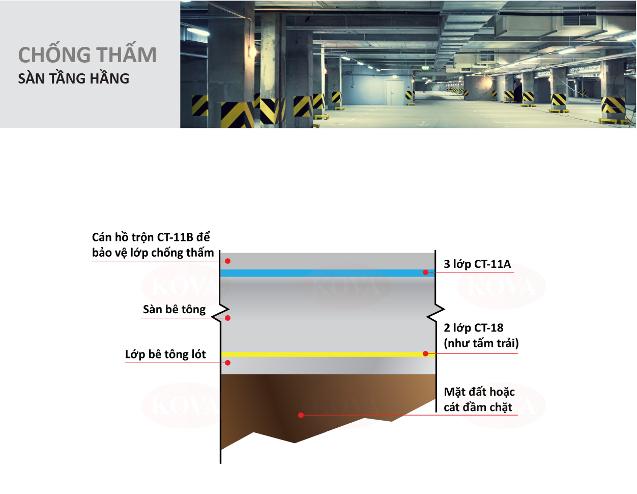 Chống thấm sàn tầng hầm bằng sơn chống thấm Kova CT 11 A