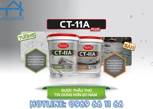 - Chất chống thấm cao cấp KOVA CT-11A Plus Sàn CT-11A chịu áp lực ngược nhẹ nếu thi công 3 lớp (tại vị trí như: hồ bơi, bể nước, sàn tầng hầm hay chân tường)