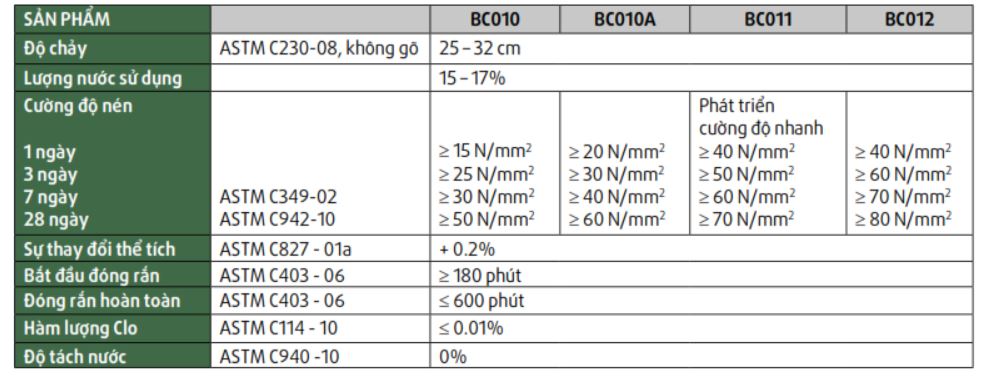 - Độ chảy lỏng tuyệt vời cho cả ứng dụng rót và bơm áp lực