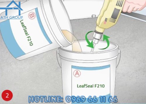 - Trộn thành phần A (chất lỏng) bằng máy trộn thích hợp trong 30 giây;