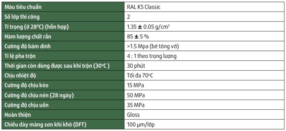 - Độ bám dính với bê tông: > 1.5N/mm2