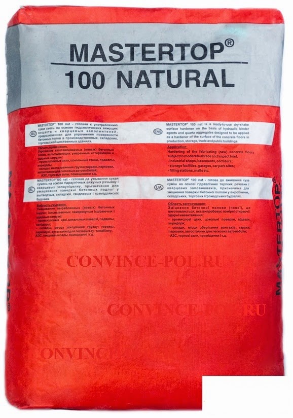 MASTERTOP 100 là sản phẩm dạng bột, được trộn sẵn, dùng để rắc lên bề mặt Bê tông hoặc vữa lúc còn ướt làm tăng độ chống mài mòn của bề mặt, ngoài ra sản phẩm còn có thể tạo màu và làm tăng độ thẩm mỹ của bề mặt.
