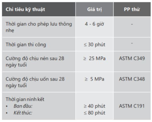 - Tỷ lệ lượng nước trộn 22 - 24% theo khối lượng;