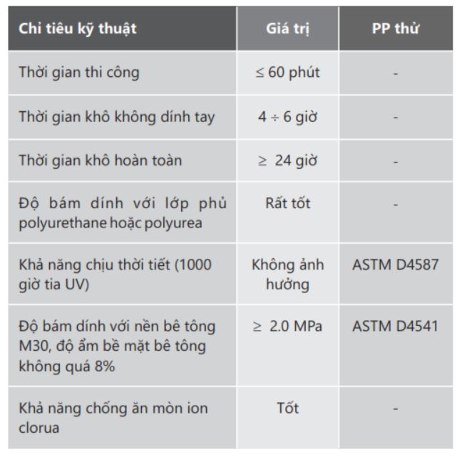 - Thời gian thi công không quá 60 phút (phụ thuộc vào nhiệt độ môi trường);