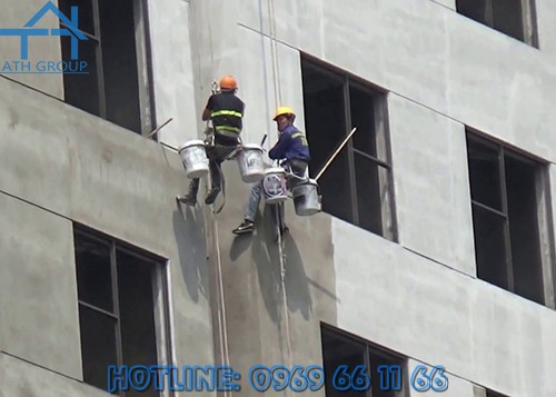 - Dùng cọ quét, con lăn hoặc súng phun có khí