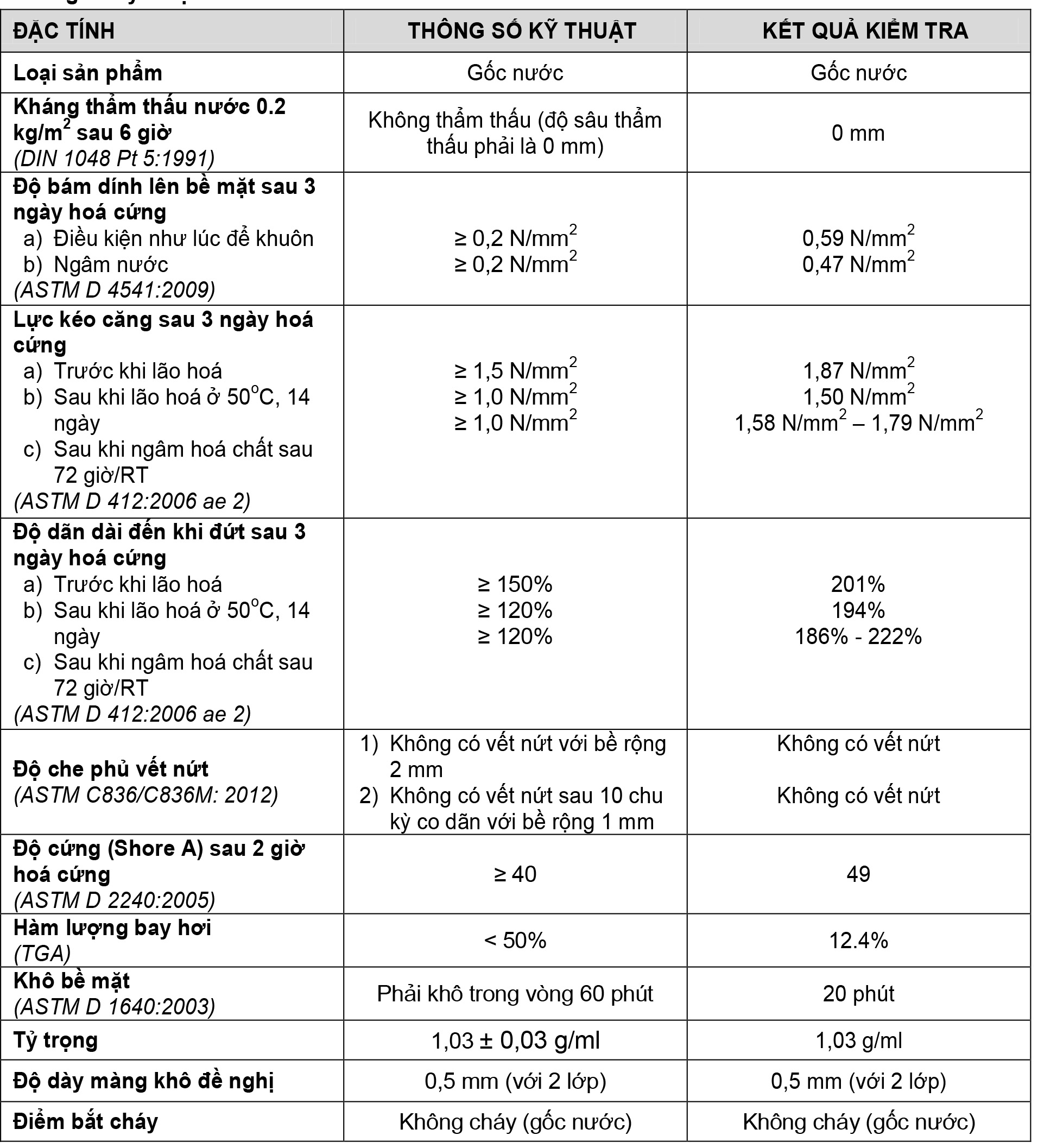 - Sau khi thi công lớp thứ 2 của màng chống thấm, cho phép thời gian đông cứng trong khoảng 4 giờ trước khi cán nền (thi công lớp bảo vệ màng).