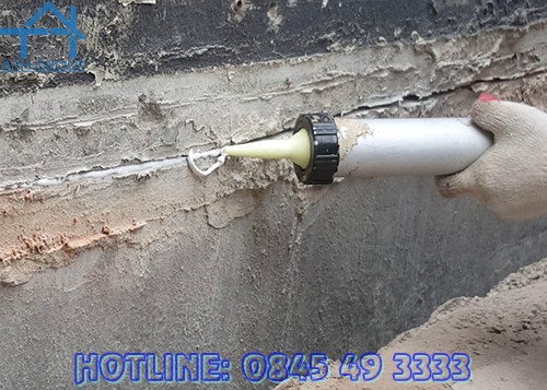 Dùng súng bắn keo chuyên dụng để đưa keo trám khe Quicseal 201 vào vị trí khe cần trám trét