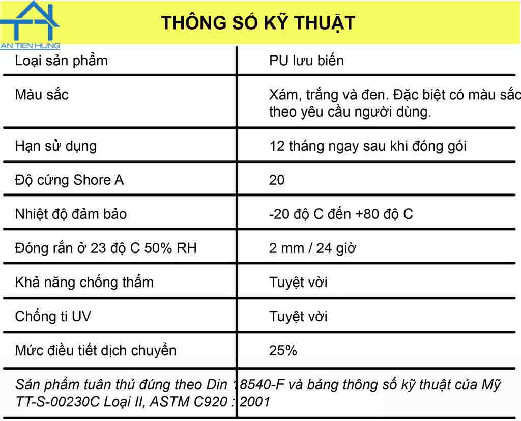 Quicseal 201 có độ đàn hồi thấp, gốc Polyurethane, phản ứng với hơi ẩm của không khí để tạo thành một lớp cao su linh hoạt chèn lấp khe