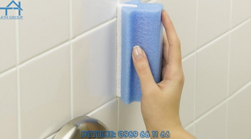 - Dọn sạch vữa dư thừa bằng miếng cạo ni lông và miếng bọt biển ẩm.