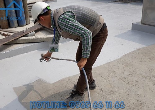 - Sử dụng con lăn/máy phun lăn hỗn hợp liên tục, tốt nhất là 2 lớp với độ dày 1-1.5mm mỗi lớp