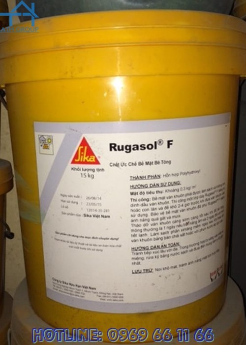 - Chất ức chế bề mặt Rugasol F được sử dụng nhằm làm lộ cốt liệu trên bề mặt bê tông gốc xi măng Porland.