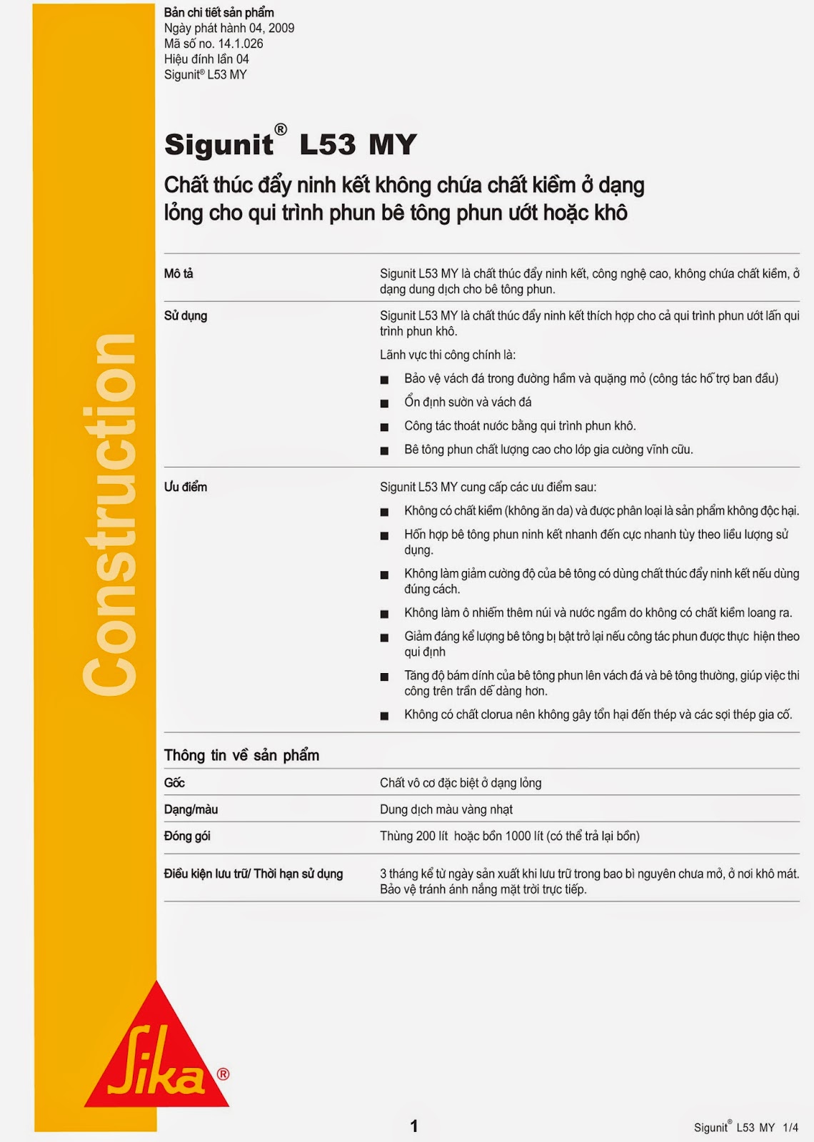 Sika Sigunit L53 MY là chất thúc đẩy ninh kết thích hợp cho cả qui trình phun ướt lẫn qui trình phun khô.