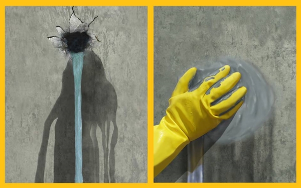 - Trám Sika 102 vừa mới trộn vào nơi vừa đục hình chữ V, bắt đầu từ bên ngoài và thi công dần vào trung tâm nơi rỉ nước (chặn nơi rò rỉ nhỏ trước). Giữ vật liệu tại chỗ và sau đó chà bỏ lớp Sika 102 dư bên ngoài.