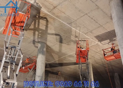 - Sau khi trộn, đổ nguyên liệu vào thùng chứa của máy bơm, khuấy nhẹ và sử dụng trong thời gian thi công của sản phẩm.