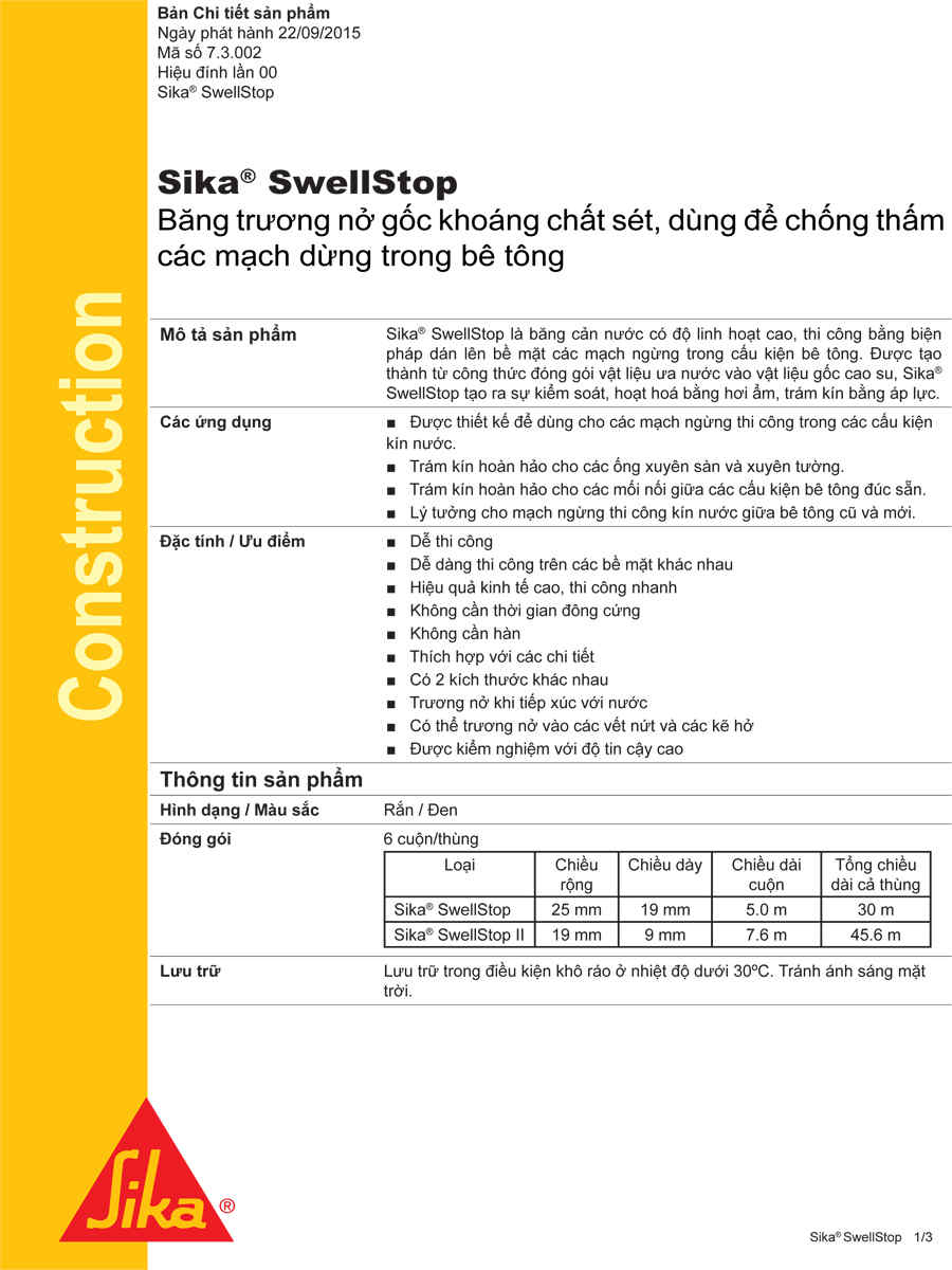 Catalogue Băng trương nở Sika SwellStop