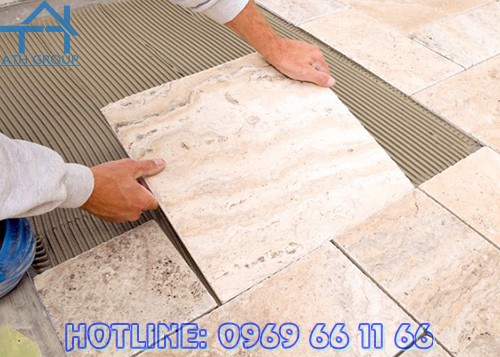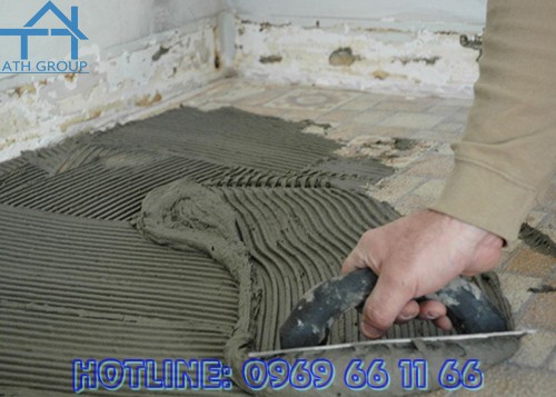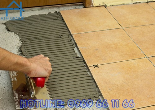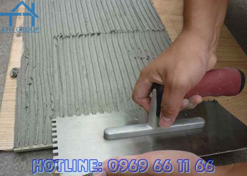 - Thi công với bay răng cưa cắt hình vuông cho gạch lớn.