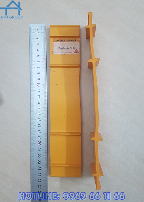 Băng cản nước chống thấm Sika Waterbar V25 được chế tạo từ PVC chịu nhiệt, đàn hồi, có tác dụng chặn nước thấm qua mạch ngừng trong kết cấu bê tông. Kích thước chiều rộng là 25 cm, độ dày là 3 - 5 mm và chiều dài mỗi cuộn là 20m.