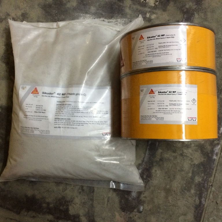 Sikadur 42 MP Là loại vữa gốc epoxy 3 thành phần có thể rót do có thành phần nhựa epoxy cường độ cao và các cốt liệu đặc biệt. Sau khi trộn tạo thành vữa có thể tự chảy được. Được sử dụng cho những máy móc thiết bị nặng và điều kiện thi công khó