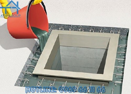 Dùng gậy thép hoặc dây xích để đảm bảo các lỗ hổng được lắp đầy.