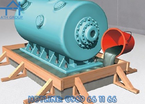 Nếu có thể, rót vữa vào các lỗ neo trước, sau đó rót vữa vào bệ máy và đảm bảo cho dòng chảy của vữa được liên tục.