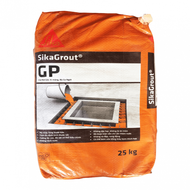 SikaGrout GP là vữa rót trộn sẵn gốc xi măng, tự san bằng, không co ngót với thời gian cho phép thi công được kéo dài để thích ứng với nhiệt độ môi trường tại chỗ