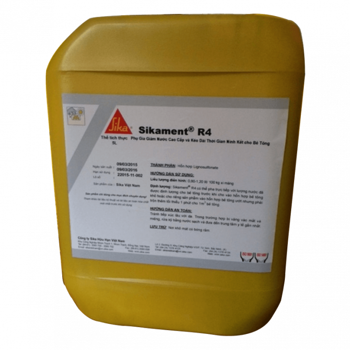 Sikament R4 là một chất siêu hóa dẻo và hiệu quả cao có tác dụng kéo dài thời gian ninh kết để sản xuất bê tông có độ chảy cao trong điều kiện khí hậu nóng,và đồng thời là tác nhân giảm nước đáng kể để làm tăng cường độ cuối cùng cho bê tông.